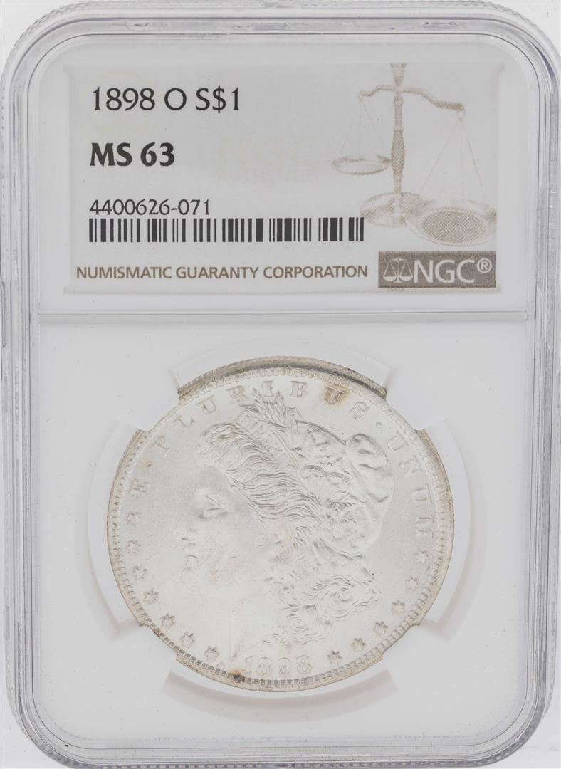 One 1898-O $1 Morgan Silver Dollar Coin NGC MS63. NGC Certified.