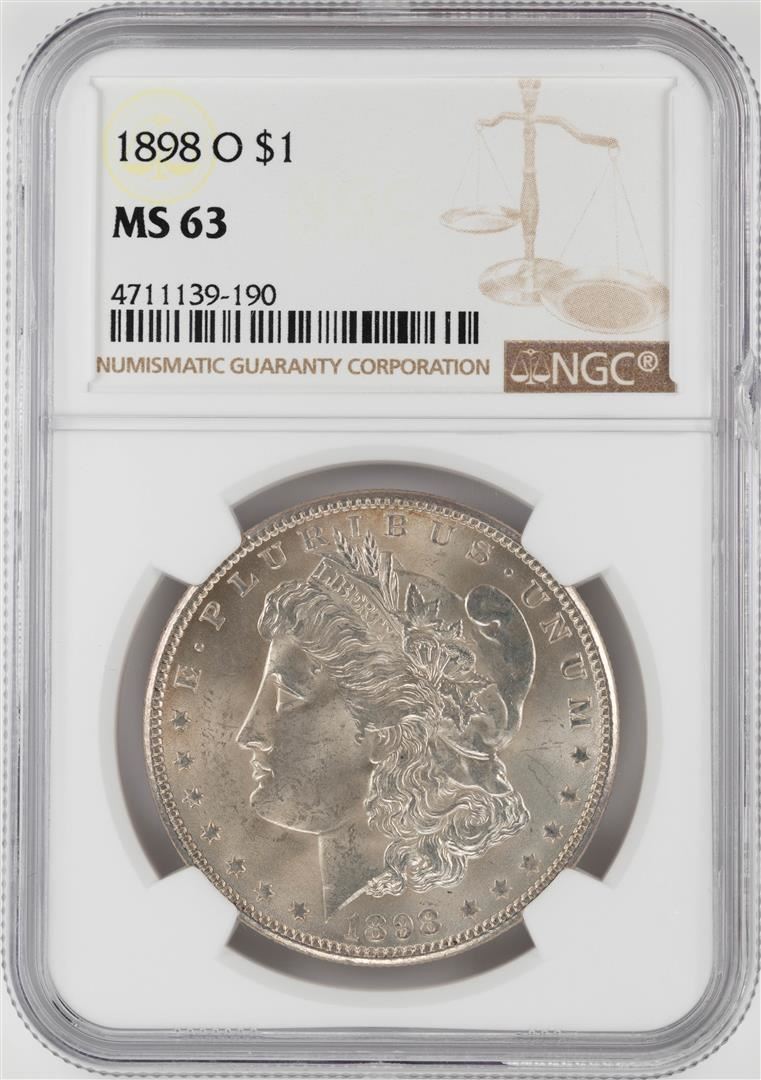 One 1898-O $1 Morgan Silver Dollar Coin NGC MS63. NGC Certified.