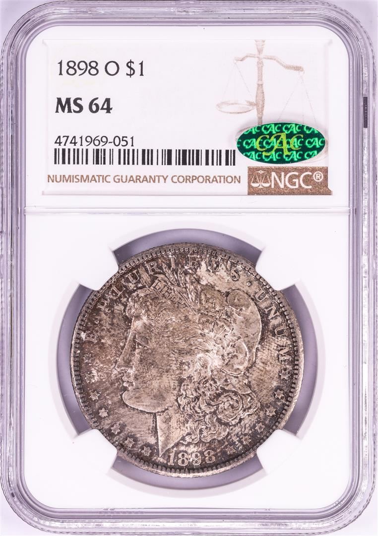 One 1898-O $1 Morgan Silver Dollar Coin NGC MS64 CAC. NGC Certified.