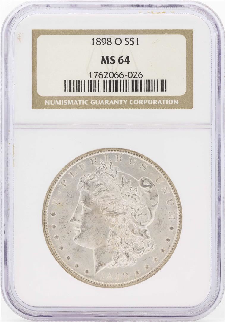 One 1898-O $1 Morgan Silver Dollar Coin NGC MS64. NGC Certified.