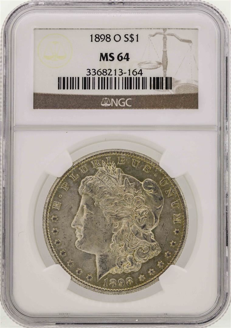One 1898-O $1 Morgan Silver Dollar Coin NGC MS64. NGC Certified.