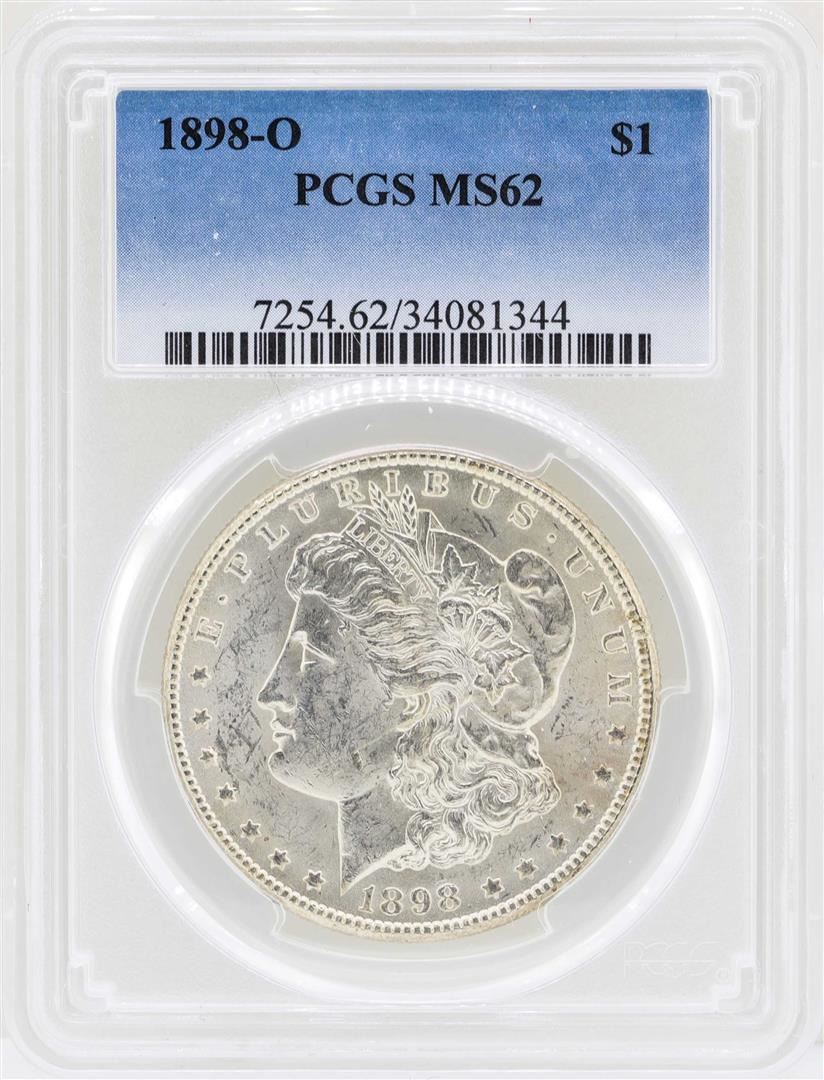 One 1898-O $1 Morgan Silver Dollar Coin PCGS MS62. PCGS Graded.