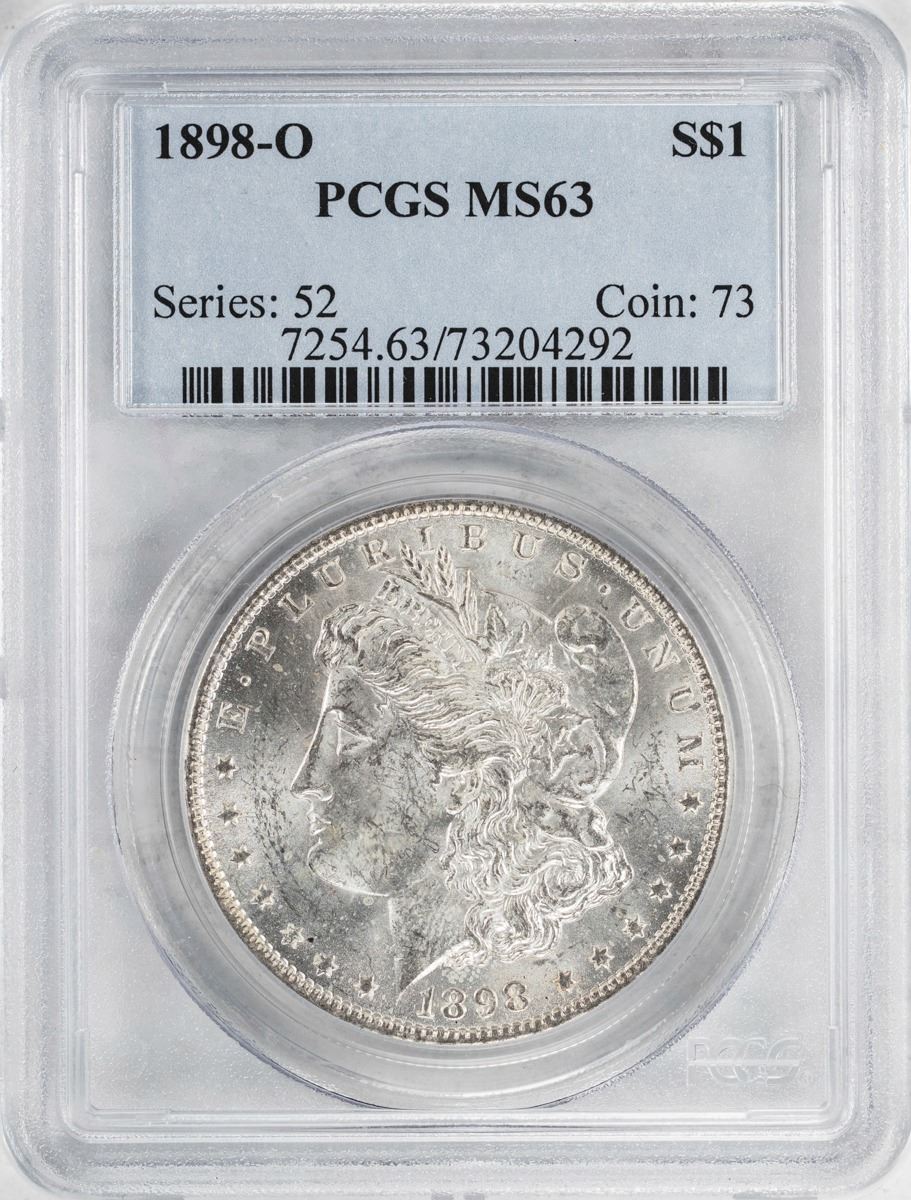 One 1898-O $1 Morgan Silver Dollar Coin PCGS MS63.