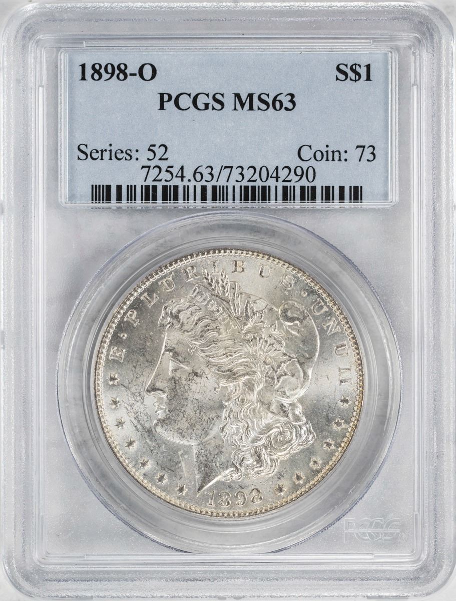 One 1898-O $1 Morgan Silver Dollar Coin PCGS MS63.