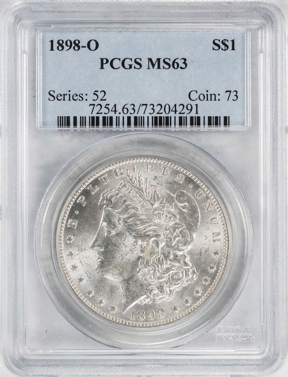 One 1898-O $1 Morgan Silver Dollar Coin PCGS MS63.