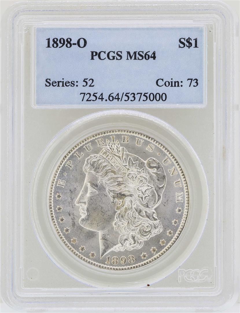 One 1898-O $1 Morgan Silver Dollar Coin PCGS MS64. PCGS Graded.