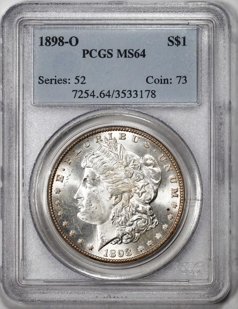 One 1898-O $1 Morgan Silver Dollar Coin PCGS MS64. PCGS Graded.