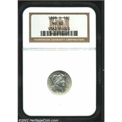 1898-O 10C MS62 NGC. Like all O-mint Barber Dimes from the 1890s, the '98-O is anything but common i