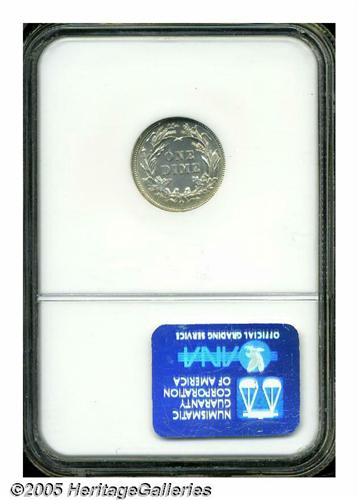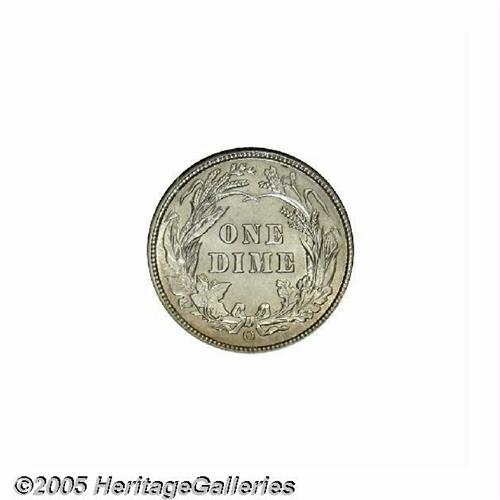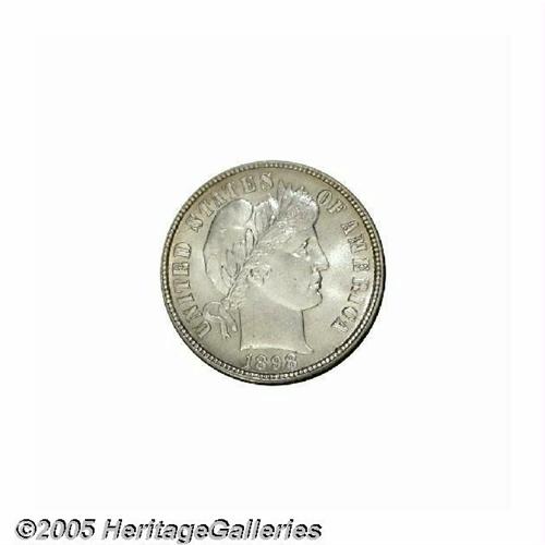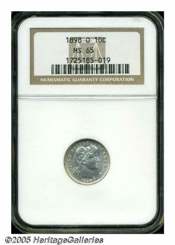 <B>1898-O<10C> MS65 NGC.</B></I> A scarce and under appreciated New Orleans issue, most high grade examples (of which there are few) being softly struck on the headband and peripheral letters. Not so with this piece, however. It shows complete details on LIBERTY, and is satiny and bright throughout. Untoned aside from a blush of apricot color on the lower reverse. Population: 10 in 65, 3 finer (6/05).