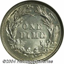 <B>1898-O<10C> MS65 NGC.</B></I> A scarce and underappreciated New Orleans issue, most high grade examples (of which there are few) being softly struck on the headband and peripheral letters. Not so with this piece, however. It shows complete details on LIBERTY, and is satiny and bright throughout. Untoned aside from a blush of apricot color on the lower reverse. Population: 10 in 65, 4 finer (7/04). <BR><BR><B>Important notice:</B> Heritage usually auctions material at the rate of 200-250 lots per hour. On some occasions eBay Live bid software or the Internet may not be able to keep up with the pace of the auction. We recommend placing a realistic absentee bid now as insurance to avoid disappointment. Occasionally the auctioneer may eliminate or reject an eBay Live bid, and the auctioneer may also reopen a lot after the close of the eBay live bidding (usually because we missed an audience bid), and may reject your bid even if it shows you as the winning bidder. By bidding via eBay Live, you agree that Heritage may award the lot to another bidder at its sole discretion under the circumstances described above or any other reasonable circumstances. Since eBay bids are not shown to us until we open the lot on the floor, we treat those bids just like floor bids. In most cases the floor responds before the eBay bid is presented to us, due to Internet lag time, so for consistency we have made it a policy that floor bids are always considered first over tie eBay live bids. Also please note that all Heritage lots purchased through eBay Live carry a 20% Buyer's Premium. Please make sure you read the Terms and Conditions before you bid. </span></font></tr></table></td></tr></table>