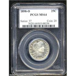 <table><tr><td><TABLE cellSpacing=0 cellPadding=0 width="100%" bgColor=#000000 border=0><TBODY> <TR><TD width="100%"><TABLE cellSpacing=1 cellPadding=3 width="100%" border=0><TBODY><TR><TD width="100%" bgColor=#79735c><FONT face=arial color=#ffffff size=3><B>Description</B> </FONT></TD></TR><TR><TD width="100%" bgColor=#ffffff><FONT face=arial size=2><B>1898-O 25C MS64 PCGS.</B></I> The 1898-O is one of the scarcest dates in the series in VF and higher grades. In Mint State it is ranked as third scarcest. High grade examples such as this one are very rare and seldom encountered. The surfaces are bright overall with a strong reflective glimmer in the fields. Both sides are completely untoned with a strong strike. A couple of marks on Liberty's cheek and neck serve to limit the grade. Still, a superlative example of this scarce issue. Population: 12 in 64, 7 finer (10/03). </FONT></TD></TR></TBODY></TABLE></TD></TR></TBODY></TABLE><BR><A name=PricesRealized></A><TABLE cellSpacing=0 cellPadding=0 width="100%" bgColor=#000000 border=0><TBODY><TR><TD width="100%"><TABLE cellSpacing=1 cellPadding=3 width="100%" border=0><TBODY><TR><TD width="100%" bgColor=#79735c><A name=PR><FONT face=arial color=#ffffff size=3><B>Previous Prices from Heritage Auctions</B> </FONT></A></TD></TR><TR><TD bgColor=#f6f6ed><TABLE cellSpacing=0 cellPadding=0 width="100%" border=1><TBODY><TR><TD align=middle width="33%"><B>Date</B></TD><TD align=middle width="33%"><B>Service</B></TD><TD align=middle width="33%"><B>Price</B></TD></TR><TR bgColor=whitesmoke><TD width="33%"><B>08/08/2001</B></TD><TD width="33%">NGC</TD><TD width="33%">$1,955.00</TD></TR><TR bgColor=whitesmoke><TD width="33%"><B>03/01/1998</B></TD><TD width="33%">NGC</TD><TD width="33%">$2,860.00</TD></TR></TBODY></TABLE></TD></TR><TR><TD bgColor=#ffffff><FONT face=arial size=1 ?>PLEASE NOTE: All prices realized reflect the final hammer price PLUS the buyer's premium in auctions that charge a buyer's premium. Each item has a notation at the top of the listing indicating whether that lot included a buyer's premium. Example: A item that sells with a final hammer price of $100 and a 20% buyer's premium will display with a price realized of $120. All information listed is intended to be as accurate as possible, but errors are possible. Please use this guide carefully and inform us of any inaccuracies. </FONT></TD></TR></TBODY></TABLE></TD></TR></TBODY></TABLE><BR><TABLE cellSpacing=0 cellPadding=0 width="100%" bgColor=#000000 border=0><TBODY><TR><TD width="100%"><TABLE cellSpacing=1 cellPadding=3 width="100%" border=0><TBODY><TR><TD width="100%" bgColor=#79735c colSpan=6><FONT face=arial color=#ffffff size=3><B>Price Guide*</B> </FONT></TD></TR><TR bgColor=#f6f6ed><TD align=middle><B>Grade</B> </TD><TD align=middle><B>Coin World<BR>(Trends)</B> </TD><TD align=middle><B>Numismedia<BR>Retail</B> </TD><TD align=middle><B>Numismedia<BR>Wholesale</B> </TD><TD align=middle><B>Coin<BR>Universe</B> </TD><TD align=middle><B>Heritage<BR>Value Index</B> </TD></TR><TR bgColor=#ffffff><TD align=middle>63</TD><TD align=right>$1,500.00</TD><TD align=right>---</TD><TD align=right>$1,450.00</TD><TD align=right>$1,550.00</TD><TD align=right>$1,041.67</TD></TR><TR style="FONT-WEIGHT: bold" bgColor=#cccfdd><TD align=middle>64</TD><TD align=right>$3,300.00</TD><TD align=right>---</TD><TD align=right>$2,850.00</TD><TD align=right>$3,600.00</TD><TD align=right>$2,465.00</TD></TR><TR bgColor=#ffffff><TD align=middle>65</TD><TD align=right>---</TD><TD align=right>---</TD><TD align=right>$7,840.00</TD><TD align=right>$10,600.00</TD><TD align=right>$7,130.00</TD></TR><TR bgColor=#ffffff><TD colSpan=6><FONT size=1>*All information listed is intended to be as accurate as possible, but errors are possible. No item may be returned or refused based on this information which is provided as a service to our customers. You should contact each pricing source directly to determine the accuracy of this information. </FONT></TD></TR></TBODY></TABLE></TD></TR></TBODY></TABLE><BR><TABLE cellSpacing=0 cellPadding=0 width="100%" bgColor=#000000 border=0><TBODY><TR><TD width="100%"><TABLE cellSpacing=1 cellPadding=3 width="100%" border=0><TBODY><TR><TD width="100%" bgColor=#79735c><FONT face=arial color=#ffffff size=3><B>Population Guide</B> </FONT></TD></TR><TR bgColor=#ffffff><TD align=middle><!-- Begin Output of Population Grid--><TABLE cellSpacing=0 cellPadding=0 width="100%" border=0><TBODY><TR><TD vAlign=center><TABLE cellSpacing=0 width="100%" border=1 cellsadding="3"><TBODY><TR><TD vAlign=center><TABLE cellSpacing=0 cellPadding=3 width="100%" border=1><TBODY><TR><TD vAlign=center align=middle bgColor=#f0f1e8 colSpan=2 <CENTER><FONT face=Arial size=2><B>PCGS Pop </B></FONT><CENTER></CENTER></TD><TD vAlign=center align=middle bgColor=#f0f1e8 colSpan=2><CENTER><FONT face=Arial size=2><B>NGC Pop</B></CENTER></FONT></TD></TR><TR><TD vAlign=center><FONT face=Arial size=2>(64)</FONT> </TD><TD vAlign=center align=right><FONT face=Arial size=2>12</FONT> </TD><TD vAlign=center><FONT face=Arial size=2>(64)</FONT> </TD><TD vAlign=center align=right><FONT face=Arial size=2>10</FONT> </TD></TR><TR><TD vAlign=center><FONT face=Arial size=2>(>64)</FONT> </TD><TD vAlign=center align=right><FONT face=Arial size=2>7</FONT> </TD><TD vAlign=center><FONT face=Arial size=2>(>64)</FONT> </TD><TD vAlign=center align=right><FONT face=Arial size=2>8</FONT> </TD></TR></TBODY></TABLE></TD></TR></TBODY></TABLE></TD></TR></TBODY></TABLE><!-- End Output of Population Grid--></TD></TR></TBODY></TABLE></TD></TR></TBODY></TABLE><BR><TABLE cellSpacing=0 cellPadding=0 width="100%" bgColor=#000000 border=0><TBODY><TR> Important notice: Heritage usually auctions material at the rate of 200-250 lots per hour. On some occasions eBay Live bid software or the Internet may not be able to keep up with the pace of the auction. We recommend placing a realistic absentee bid now as insurance to avoid disappointment. Occasionally the auctionee