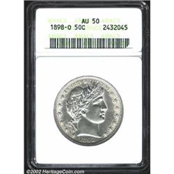1898-O 50C AU50 ANACS. The bases of the 89 in the date are lightly repunched west. This interesting variety is unlisted in Breen, Lawrence, or Fivaz-Stanton. Presumably, evidence of the repunched date is only visible on high grade specimens from an early state of this obverse die. A brilliant and briefly circulated example with a good strike and problem-free surfaces. An elusive better date. Important notice: We expect to be auctioning lots at the rate of 200-250 per hour. Sometimes eBay Premier live bid software cannot keep up with that pace, so we strongly recommend that you place a realistic proxy bid now as insurance to avoid disappointment. Also please note that all Heritage/CAA lots purchased through eBay Premier carry a 20% Buyer's Premium. Please make sure you read the Terms and Conditions.