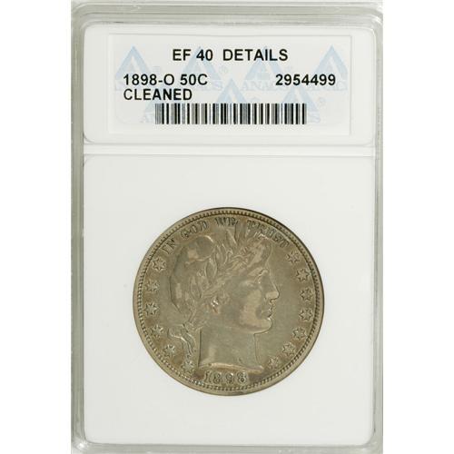 <B>1898-O 50C --Cleaned--ANACS. XF40 Details.</B></I> NGC Census: (0/51). PCGS Population (3/76). Mintage: 874,000. Numismedia Wsl. Price: $371. (#6481)<BR><BR><b>Shipping:</b> Coins & Currency (<a target="_blank" href="http://www.heritageauctions.com/common/shipping.php">view shipping information</a>)