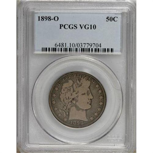 <B>1898-O 50C VG10 PCGS.</B></I> PCGS Population (12/92). NGC Census: (0/56). Mintage: 874,000. Numismedia Wsl. Price for NGC/PCGS coin in VG10: $98. (#6481)<BR><BR><b>Shipping:</b> Coins & Currency (<a target="_blank" href="http://www.heritageauctions.com/common/shipping.php">view shipping information</a>)