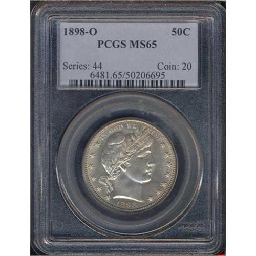 <b>1898-O Barber Half Dollar. PCGS graded MS65.</b> A frosted Gem that has a outstanding strike and flashy luster on both sides. Sometimes on this issue, the devices that were left by the dies are short of the required precision due to weak die pressure, a common trait of O-mint Barber halves, but we find the opposite to be the case here, everything is finely detailed, including the centers with only marginal softness at the upper right corner of the shield on the reverse. Very scarce in Gem Mint State <b>(PCGS # 6481)</b> <i>