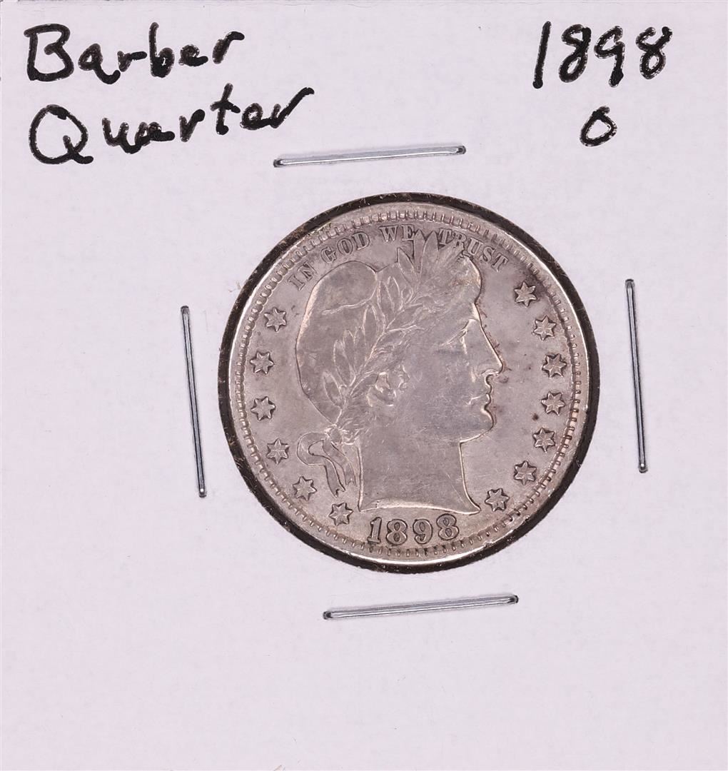 One 1898-O Barber Quarter Coin.