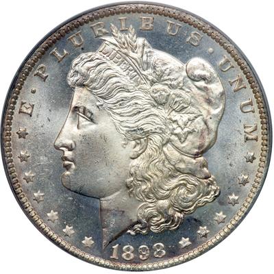 1898-O Morgan Dollar. PCGS graded MS-66 Prooflike. A nice brilliant coin. Another O-mint dollar with outstanding prooflike reflection. Pop 45; 1 finer in 67PL (PCGS # 7255).