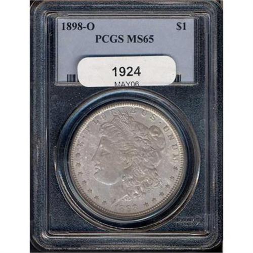 <b>1898-O Morgan Dollar. PCGS graded MS65.</b> Medium gray toning on the obverse; frosty white reverse and gem quality from top to bottom <b>(PCGS # 7254)</b> <i>