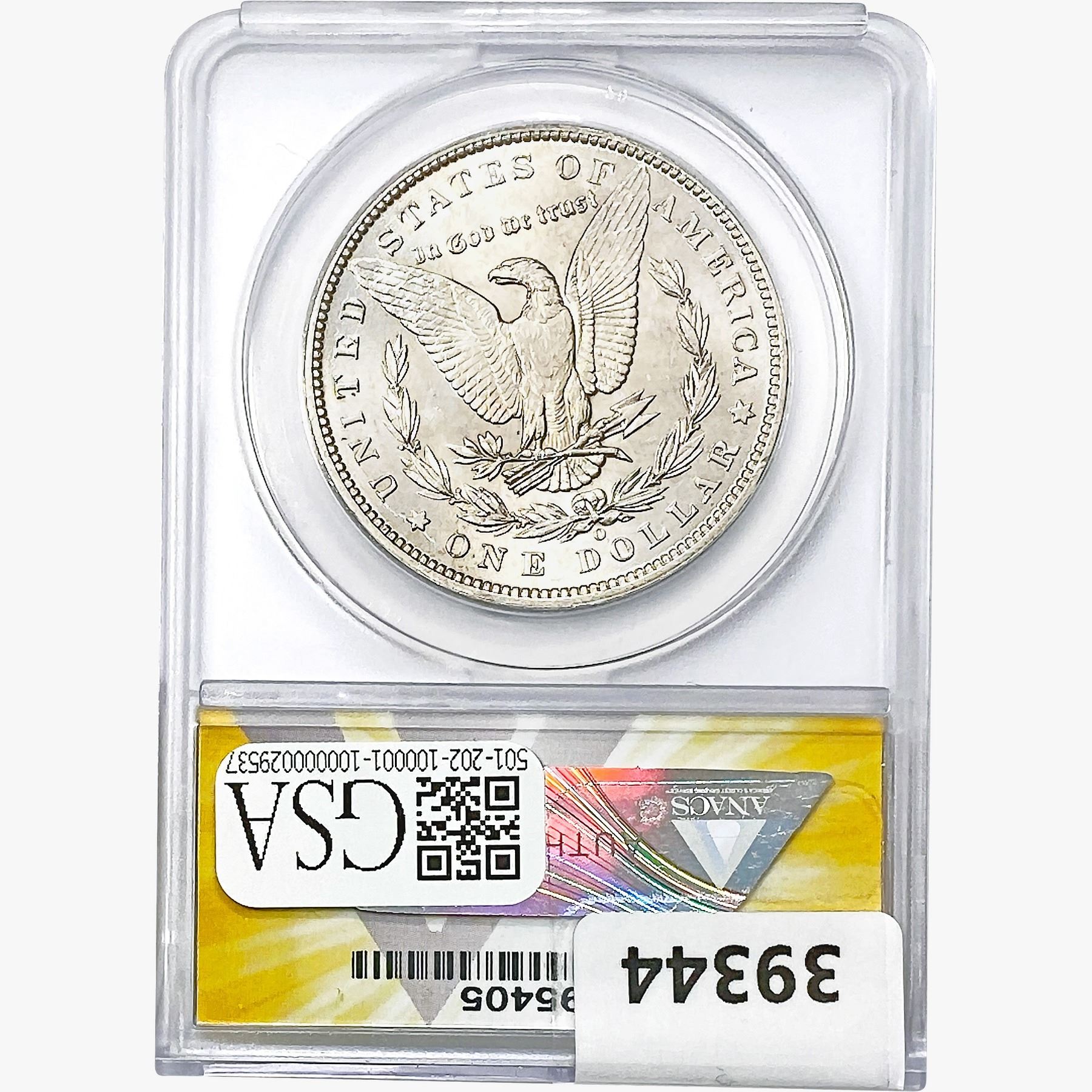 COINS AND CURRENCY LISTED IN GSA’S CATALOG AS GRADED AND ENCAPSULATED BY PCGS, NGC, ANACS, ICG, PCGS CURRENCY, PMG, PCGS BANKNOTE GRADING, CMC OR ANY OTHER THIRD-PARTY GRADING SERVICE ARE LIKEWISE SOLD “AS-IS” EXCEPT AS EXPRESSLY SET FORTH HEREIN. ALL THIRD-PARTY GRADING SERVICE GUARANTEES, INCLUDING AUTHENTICITY, ARE THE SOLE RESPONSIBILITY OF THE THIRD-PARTY GRADING SERVICE AND NOT WARRANTIES OR GUARANTEES OF GSA. BIDDERS SHOULD CONTACT THESE THIRD-PARTY GRADING SERVICES DIRECTLY WITH RESPECT TO ANY CLAIMS OR QUESTIONS THEY MAY HAVE CONCERNING THEIR GUARANTEES AND WARRANTIES. BIDDERS ACKNOWLEDGE AND AGREE THAT AUCTIONEER IS NOT BOUND BY OR LIABLE FOR ANY OPINION OR CERTIFICATION BY ANY THIRD-PARTY GRADING SERVICE. REMOVAL OF A PRODUCT FROM ITS PROTECTIVE CASING OR HOLDER OR ALTERATION OF ANY COIN HOLDER WAIVES ALL RIGHTS CONCERNING THE PRODUCT CONTAINED THEREIN.