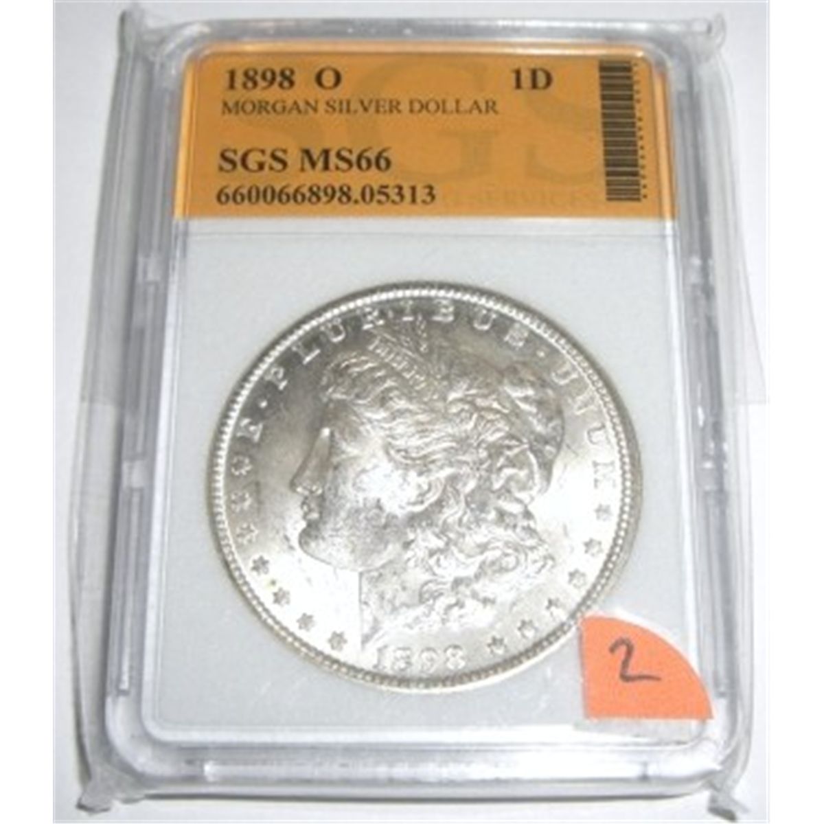 1898-O Morgan Silver Dollar *CERTIFIED by SGS MS-66*!! Serial #660066898.05313. Coin Comes with a Certificate of Authenticity!! ***Coin & Currency Grades, Conditions and Values are not Northern Colorado Estate Liquidators Responsibilty. Grades, Condition and Values are determined by Consigner(s) & Buyers ONLY***