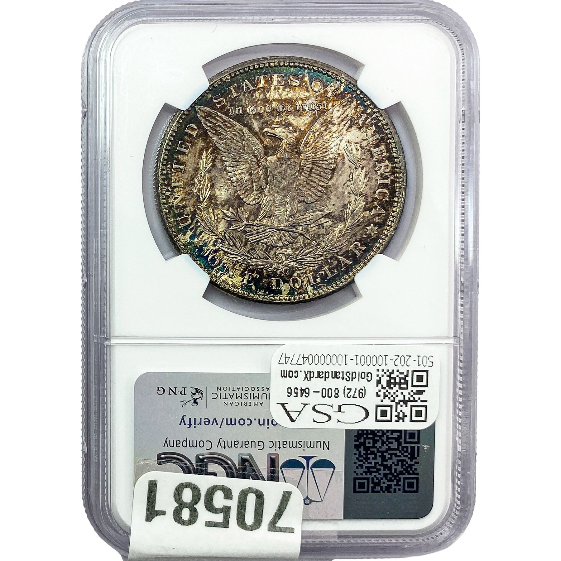 e. Coins sold referencing a third-party grading service are sold “AS IS” without any express or implied warranty, except for a guarantee by GSA that they are genuine. Removal or alteration of the holder, voids all of Bidder’s claims concerning that Product. Certain warranties may be available from the grading services and Bidders are referred to them for further details: Numismatic Guaranty Corporation (NGC), PO Box 4776, Sarasota, FL 34230, www.ngccoin.com/services/writtenguarantee.asp; Professional Coin Grading Services (PCGS), PO Box 9458, Newport Beach, CA 92658, www.pcgs.com/guarantee.html; ANACS, 6555 S. Kenton St., Ste. 303, Englewood, CO 80111; and Independent Coin Grading Co. (ICG), 7901 East Bellview, Ave., Suite 50, Englewood, CO 80111.