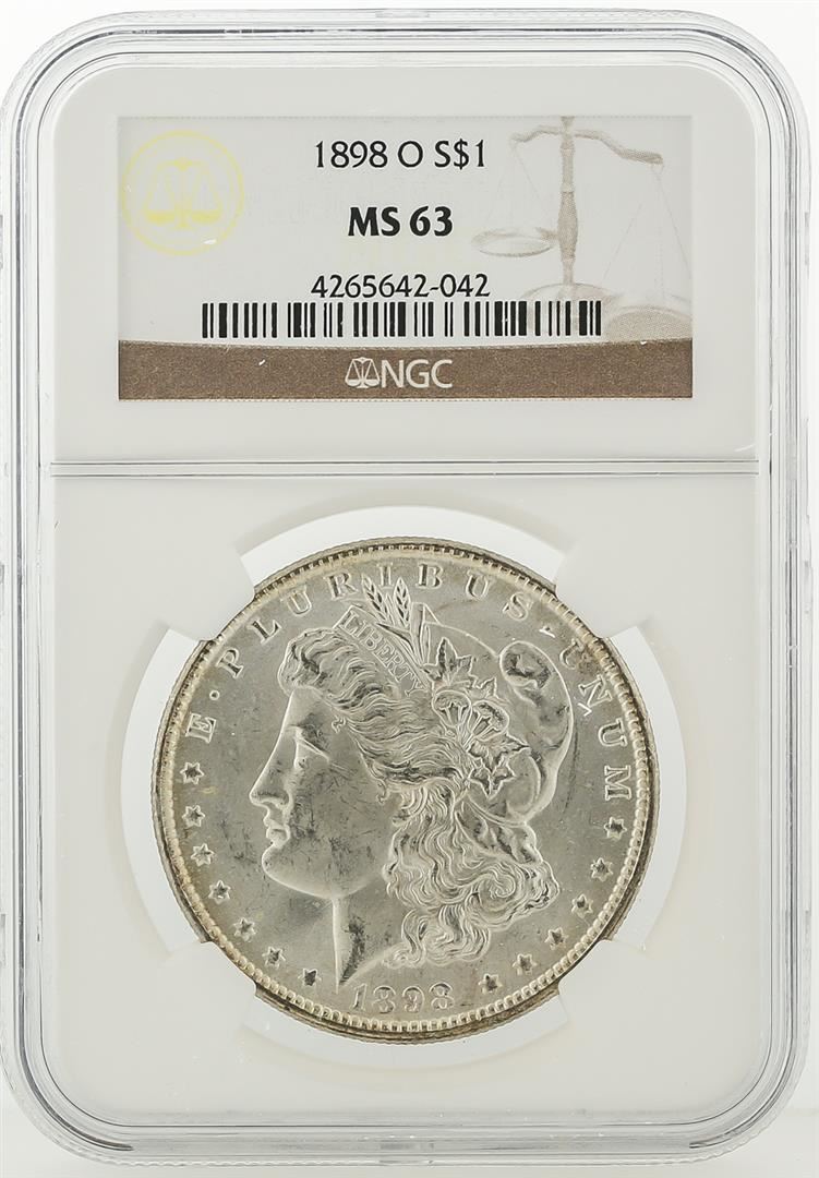 One 1898-O NGC MS63 Morgan Silver Dollar. NGC Certified.
