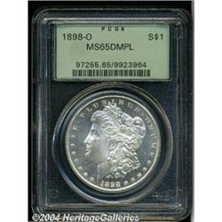 <B>1898-O<S$1> MS65 Deep Mirror Prooflike PCGS.</B></I> Brilliant with a very good strike and highly reflective mirrored fields. The surfaces are exceedingly well preserved, as befits the Gem designation. <BR><BR><B>Important notice:</B> Heritage usually auctions material at the rate of 200-250 lots per hour. On some occasions eBay Live bid software or the Internet may not be able to keep up with the pace of the auction. We recommend placing a realistic absentee bid now as insurance to avoid disappointment. Occasionally the auctioneer may eliminate or reject an eBay Live bid, and the auctioneer may also reopen a lot after the close of the eBay live bidding (usually because we missed an audience bid), and may reject your bid even if it shows you as the winning bidder. By bidding via eBay Live, you agree that Heritage may award the lot to another bidder at its sole discretion under the circumstances described above or any other reasonable circumstances. Since eBay bids are not shown to us until we open the lot on the floor, we treat those bids just like floor bids. In most cases the floor responds before the eBay bid is presented to us, due to Internet lag time, so for consistency we have made it a policy that floor bids are always considered first over tie eBay live bids. Also please note that all Heritage lots purchased through eBay Live carry a 20% Buyer's Premium. Please make sure you read the Terms and Conditions before you bid.