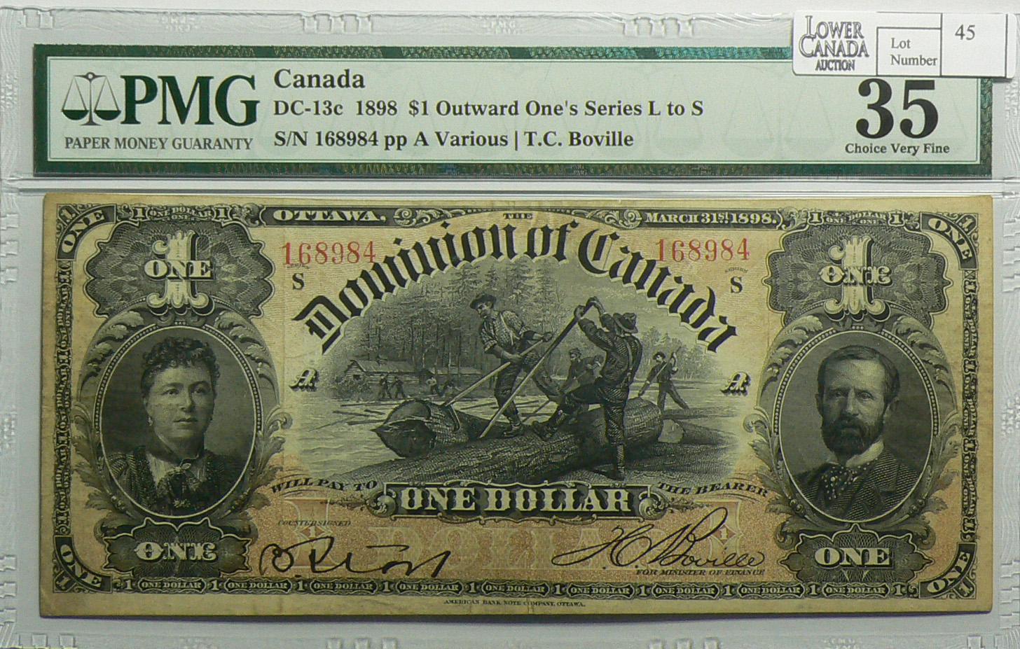 1898 One Dollar, DC-13c, PMG DC-13c, Boville, ONE's Inward, Series S, Letter A, serial 168984.