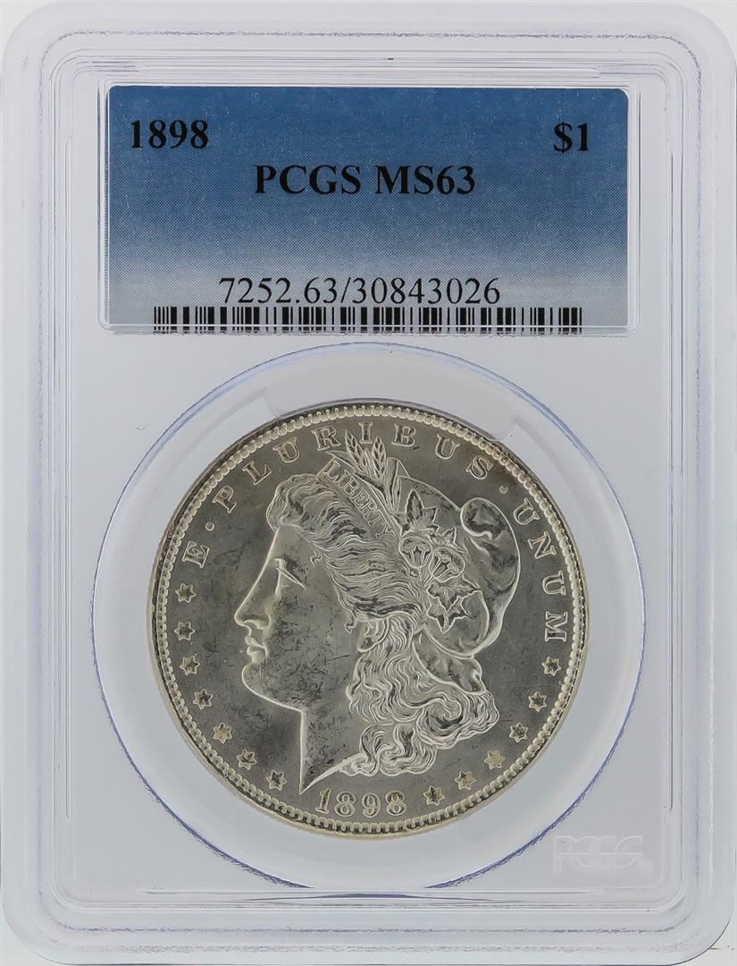 One 1898 PCGS MS63 Morgan Silver Dollar. PCGS Certified.