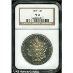 <B>1898<img border='0' src='http://www.heritagecoins.com/images/star.gif' width=10 height=10>$1 PR63 NGC.</B></I> This is a pleasing Proof that will find demand from both the specialists and type collectors. Faint steel toning with lighter ivory devices. Minor hairlines limit the grade. This should be described as a Cameo Proof in our opinion. Lot:10667