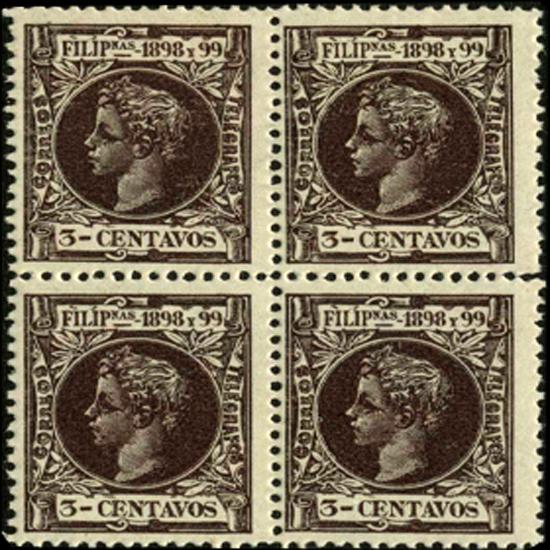 Mint; LH w/ 2 NH scarce mint block of 4 no hidden flaws; "O" in "CORREOS" attached to frame variety; SC-199