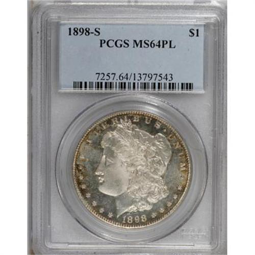 <B>1898-S $1 MS64 Prooflike PCGS.</B></I> Both sides show considerable reflectivity and above-average contrast for a Prooflike example of this later S-mint issue. Reddish-orange toning graces parts of the margins, while the remainder of the piece is untoned. PCGS has graded only five finer Prooflike pieces (9/07).<BR><BR><B>Coin Engraver:</B> George T. Morgan<BR><BR><b>Shipping:</b> Coins & Currency (<a target="_blank" href="http://www.heritageauctions.com/common/shipping.php">view shipping information</a>)