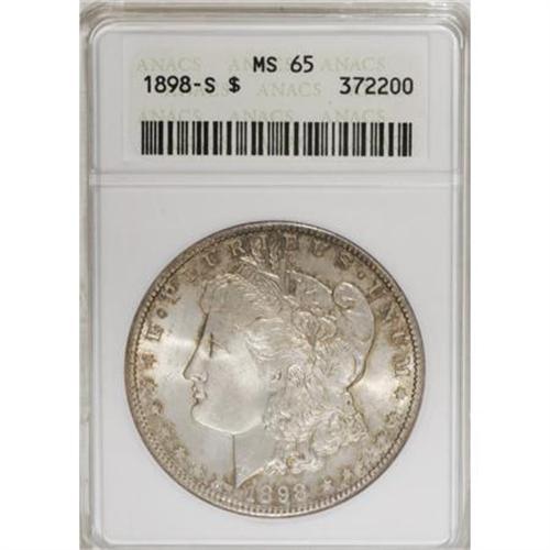 <B>1898-S $1 MS65 ANACS.</B></I> Golden-brown and russet embrace the borders of this lustrous and nicely struck Gem. Scarcer in Mint State than the lower mintage 1898-S.<BR><BR><B>Coin Engraver:</B> George T. Morgan<BR><BR><b>Shipping:</b> Coins & Currency (<a target="_blank" href="http://www.heritageauctions.com/common/shipping.php">view shipping information</a>)