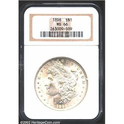 1898 S$1 MS66 NGC. A flashy Gem with a bold strike and faint yellow-green patina. The reverse is esp
