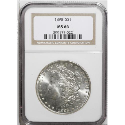 1898 S$1 MS66 NGC. Patches of pale rose patina appear