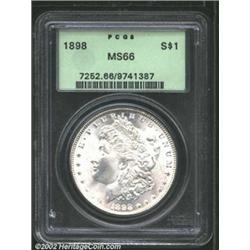1898 S$1 MS66 PCGS. Frosty-white, satiny surfaces with a near-perfect strike. The only noticeable fl