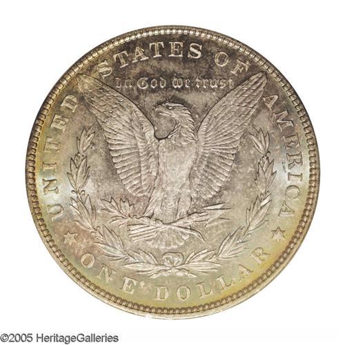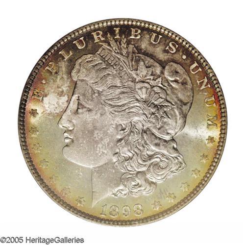 <B>1898<S$1> MS66 PCGS.</B></I> Well struck and highly lustrous, with a rich coating of sea-green, crimson, gold, and mauve-gray toning over both sides, and expertly preserved surfaces that seem entirely blemish-free.