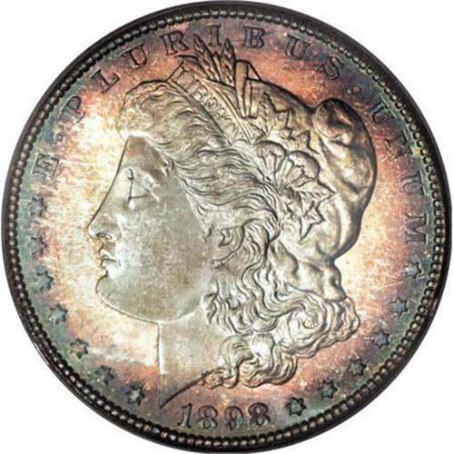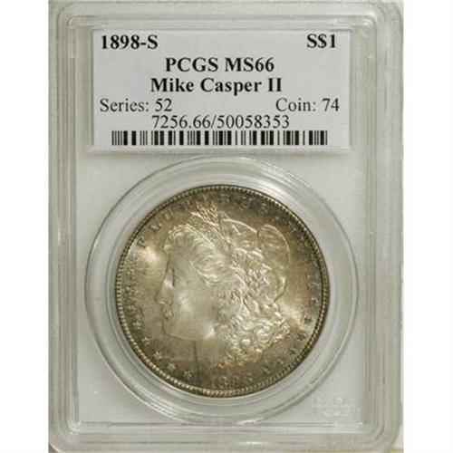 <B>1898-S $1 MS66 PCGS.</B></I> Ex: Mike Casper II. VAM-4. The serifs of the mintmark are repunched. Apple-green, chestnut-gold, and plum-red grace this lustrous and suitably struck Premium Gem. The fields are exceptionally smooth, and the cheek has only trivial grazes. Population: 58 in 66, 2 finer (1/08).<BR><I>From The Oxford Collection.</B></I><BR><BR><B>Coin Engraver:</B> George T. Morgan<BR><BR><b>Shipping:</b> Coins & Currency (<a target="_blank" href="http://www.heritageauctions.com/common/shipping.php">view shipping information</a>)