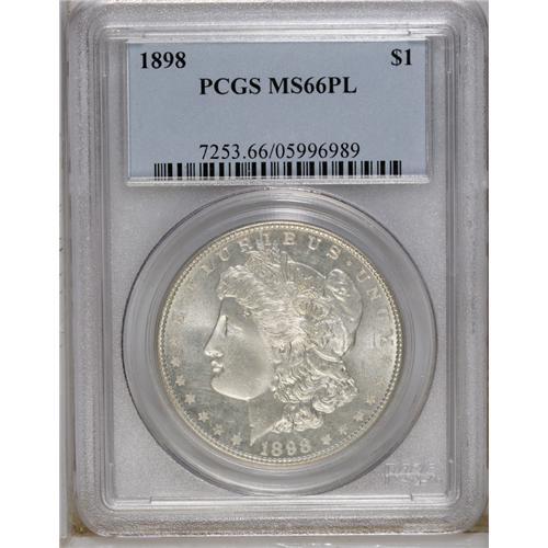 1898 S$1 MS66 Prooflike PCGS. A satiny and lightly ton