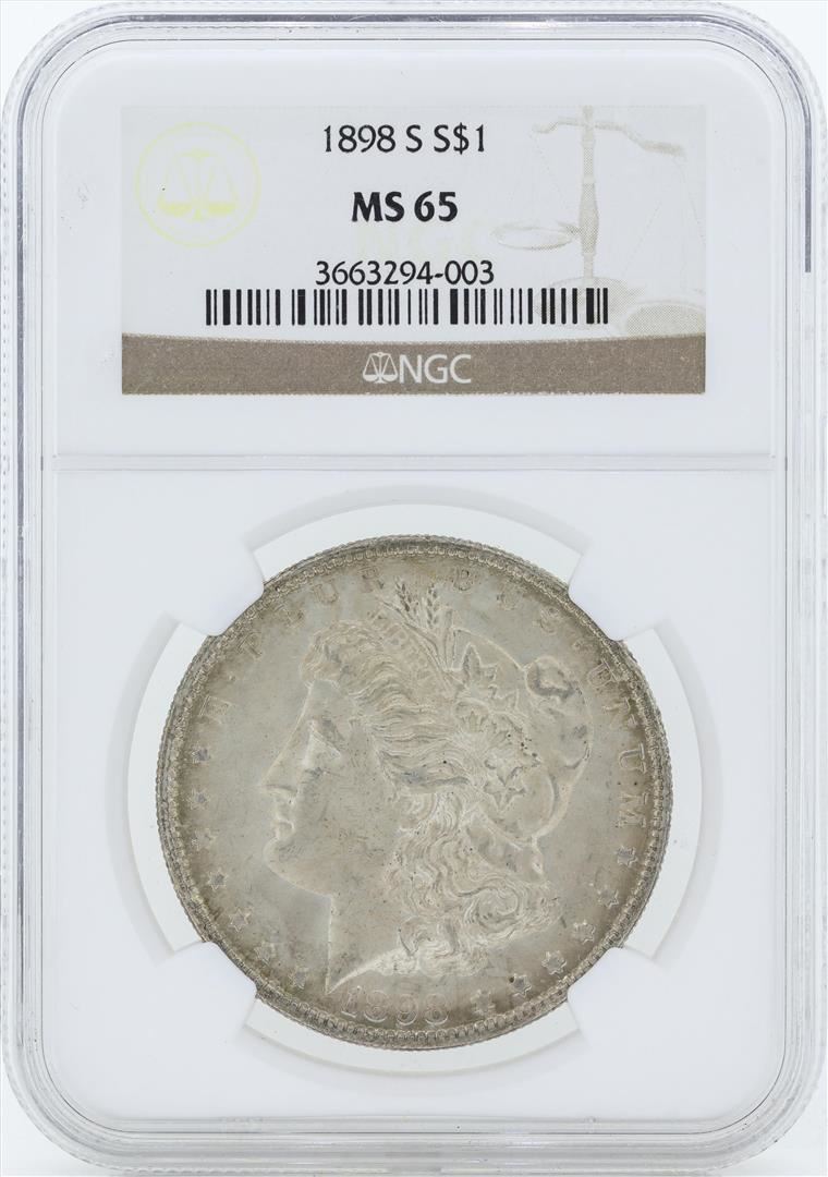 One 1898-S $1 Morgan Silver Dollar Coin NGC MS65. NGC Certified.