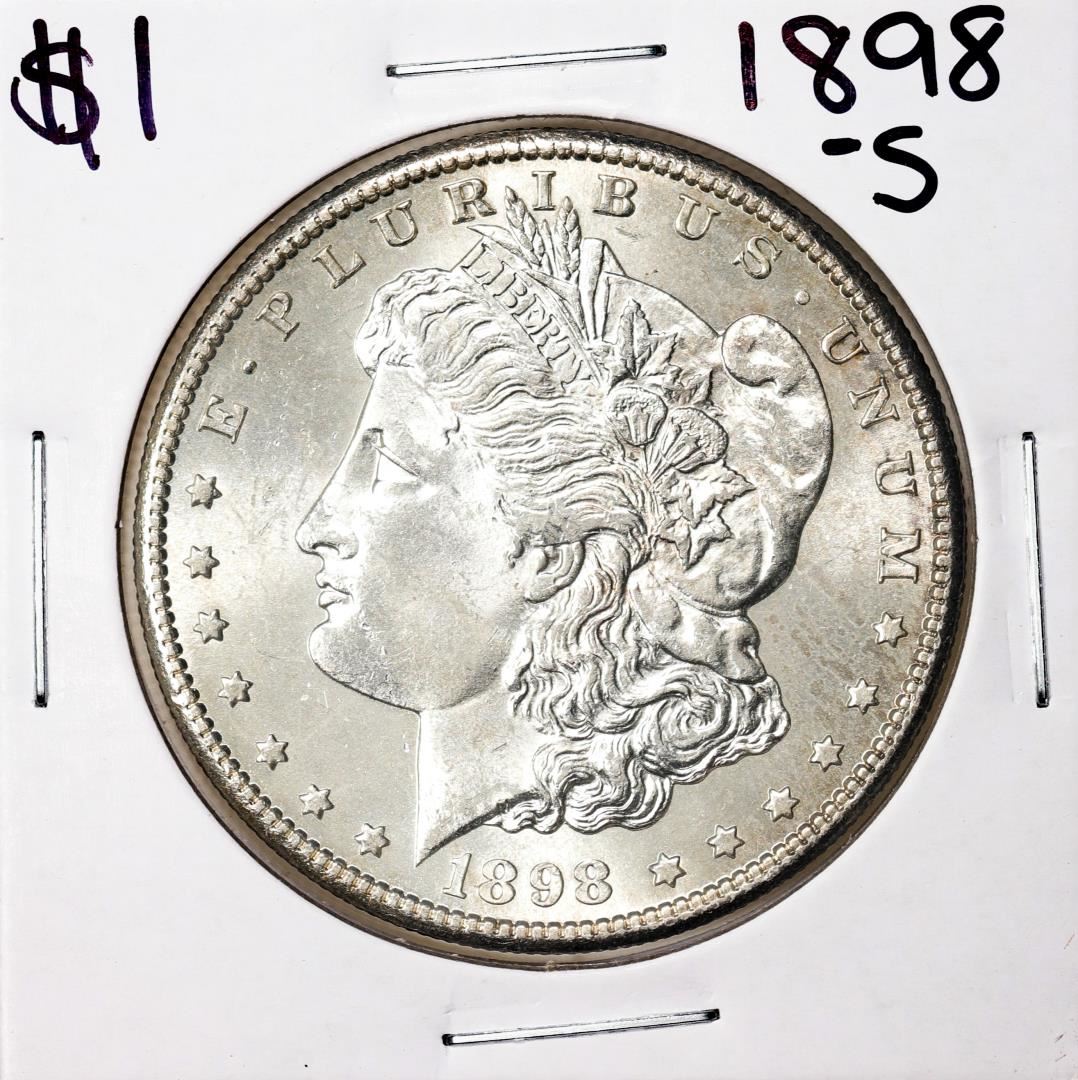 One 1898-S $1 Morgan Silver Dollar Coin.