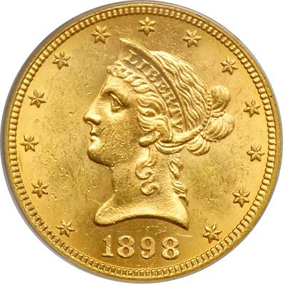 1898-S $10 Liberty. PCGS graded MS-62. Softly toned, nice satiny fields on this S-mint Eagle (PCGS # 8741) .