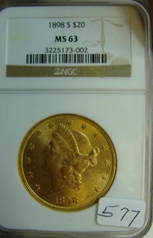 1898-S $20.00 Liberty Gold Coin NGC MS 63