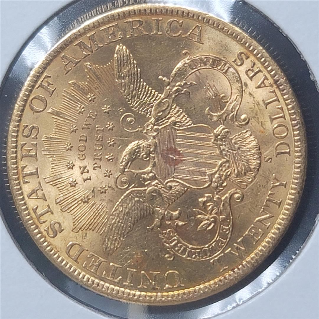 One 1898-S 20$ Liberty Head Double Eagle Gold Coin BU+.