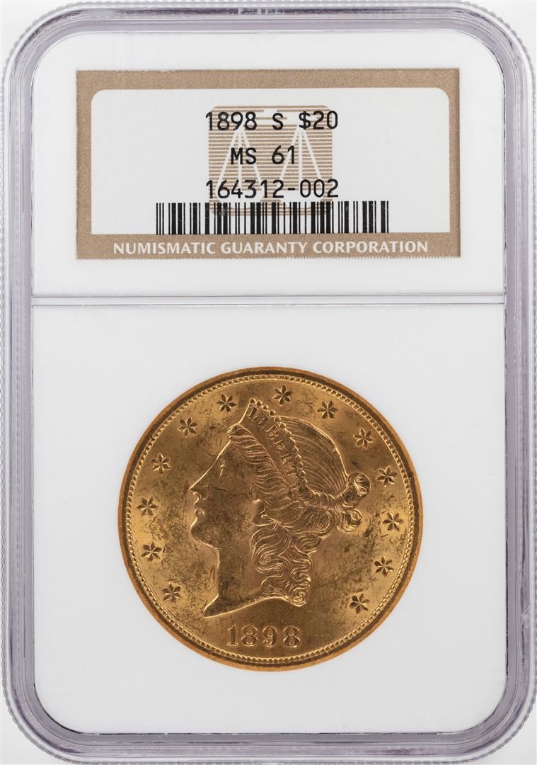 One 1898-S $20 Liberty Head Double Eagle Gold Coin NGC MS61. NGC Certified.