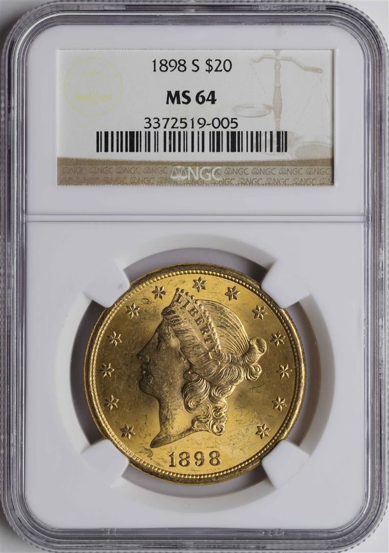 One 1898-S $20 Liberty Head Double Eagle Gold Coin NGC MS64. NGC Certified.