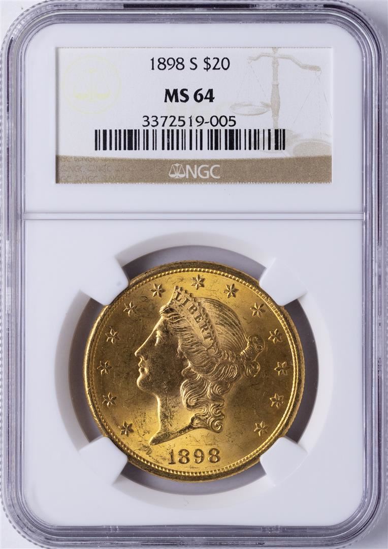 One 1898-S $20 Liberty Head Double Eagle Gold Coin NGC MS64. NGC Certified.