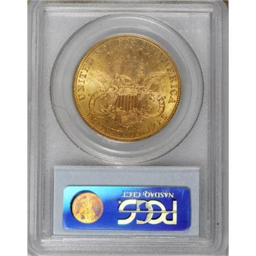 <B>1898-S $20 MS62 PCGS.</B></I> PCGS Population (4760/3431). NGC Census: (6468/3847). Mintage: 2,575,175. Numismedia Wsl. Price for NGC/PCGS coin in MS62: $755. (#9034)<BR><BR><B>Coin Engraver:</B> James B. Longacre<BR><BR><b>Shipping:</b> Coins & Currency (<a target="_blank" href="http://www.heritageauctions.com/common/shipping.php">view shipping information</a>\)
