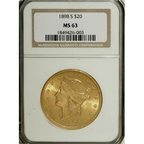 1898-S $20 MS63 NGC. NGC Census: (2878/959). PCGS
