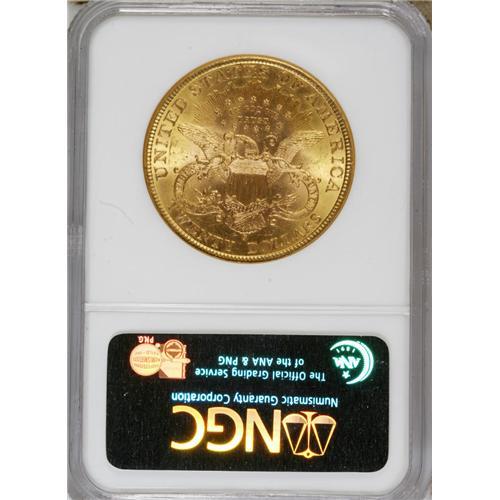 <B>1898-S $20 MS63 NGC.</B></I> Select and solidly impressed with potent luster and glimpses of emerald on each side. The yellow-gold surfaces have sustained light, grade-defining abrasions.<BR><BR><b>Shipping:</b> Coins & Currency (<a target="_blank" href="http://www.heritageauctions.com/common/shipping.php">view shipping information</a>)